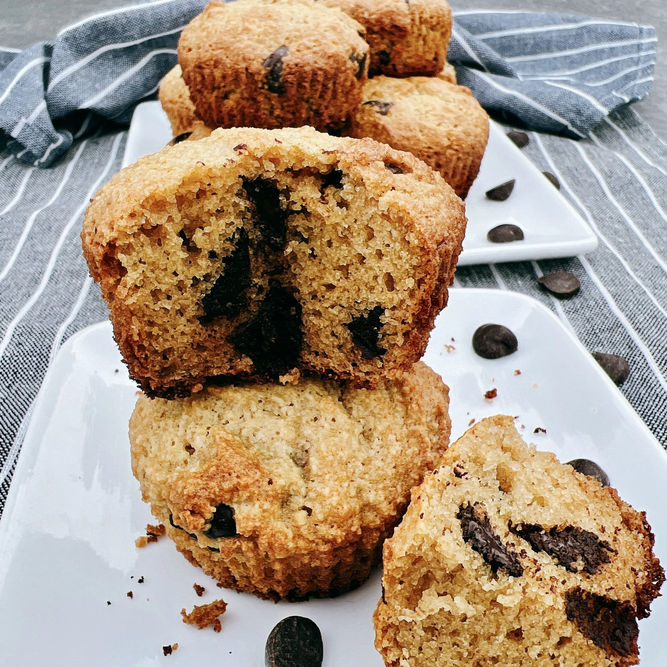 These muffins are a total hit in my family. We love using the date sweetened Hu semi-sweet chips to keep it refined sugar free. This recipe is super is simple and makes 12 muffins — they disappear quickly!