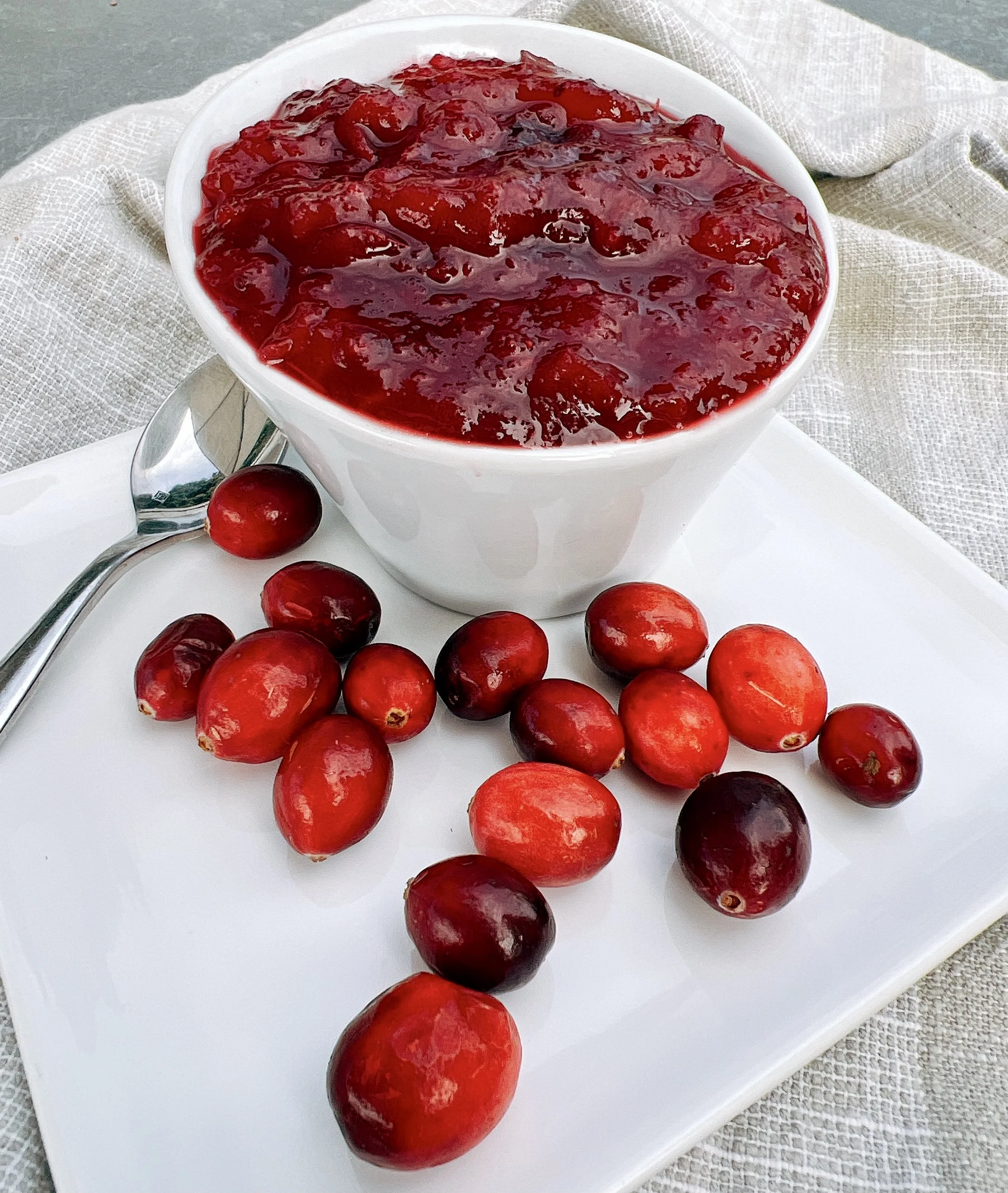 We have tried so many honey sweetened cranberry sauces and finally landed on where the secret ingredient is one finely diced apple. The apple adds a good amount of sweetness, so we are able to add less honey - so many of the recipes we tried with orange zest and juice still required a lot of honey, which overpowered the cranberry sauce. The other trick here is to use a thick, white honey, not your typical amber honey.