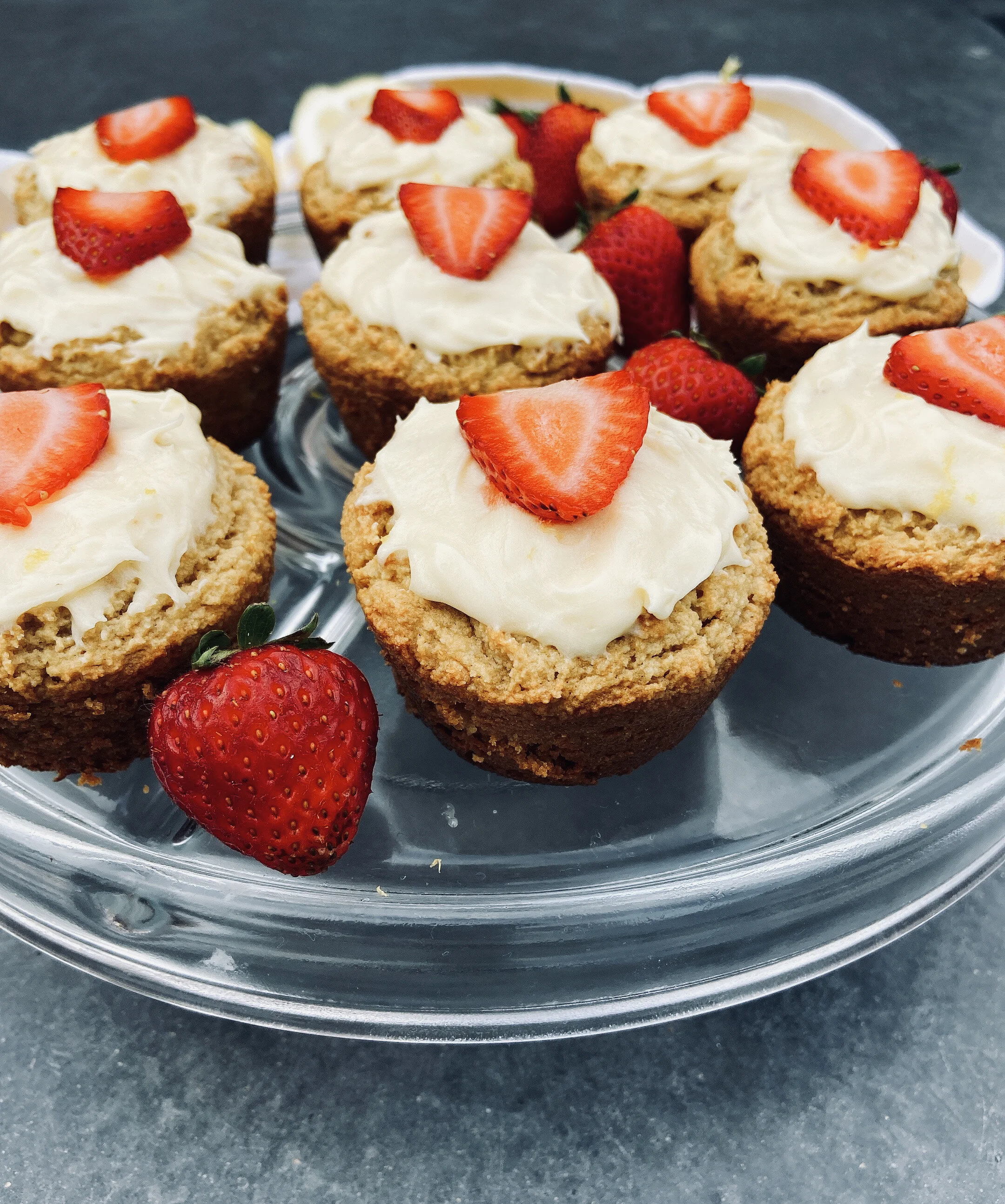 These are scrumptious (my daughter’s word) cupcakes - sweet, light and lemony. The addition of yogurt and olive oil makes for a fluffier cupcake even though it is made primarily of almond flour, which can be quite dense. We top these with lemon icing and a strawberry and everyone is happy!