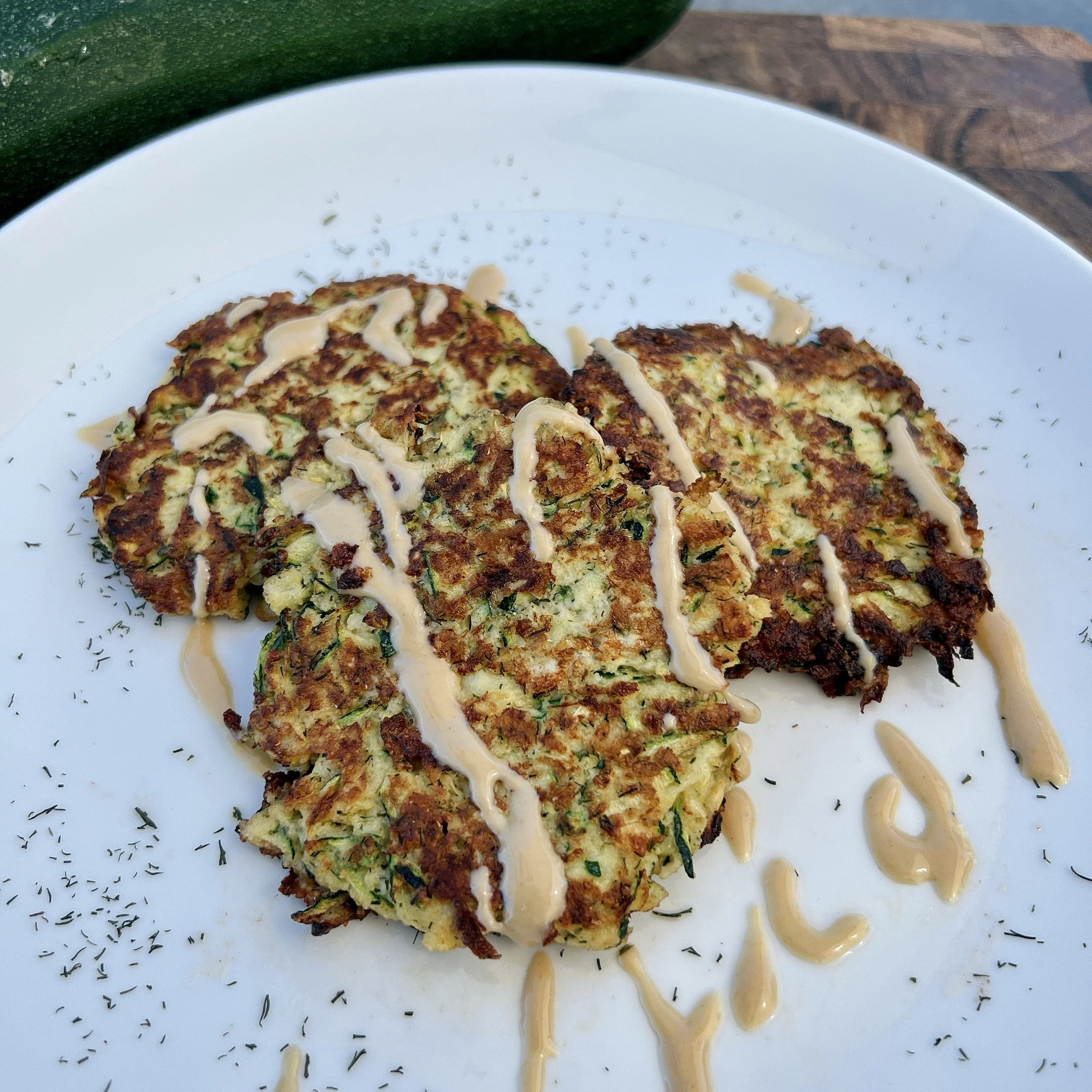 This is a great veggie summer lunch, appetizer or side to a simple roasted chicken. zucchini season has begun in our house already! We serve drizzled with tahini, with applesauce, with ranch, with tuna piled on - lots of options here! And healthy!